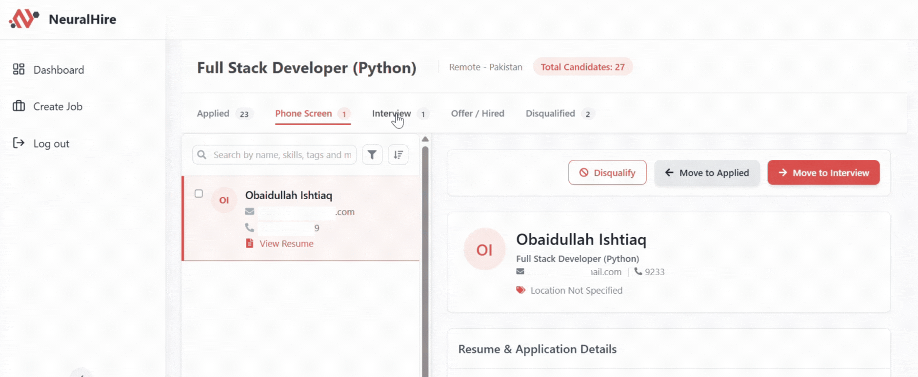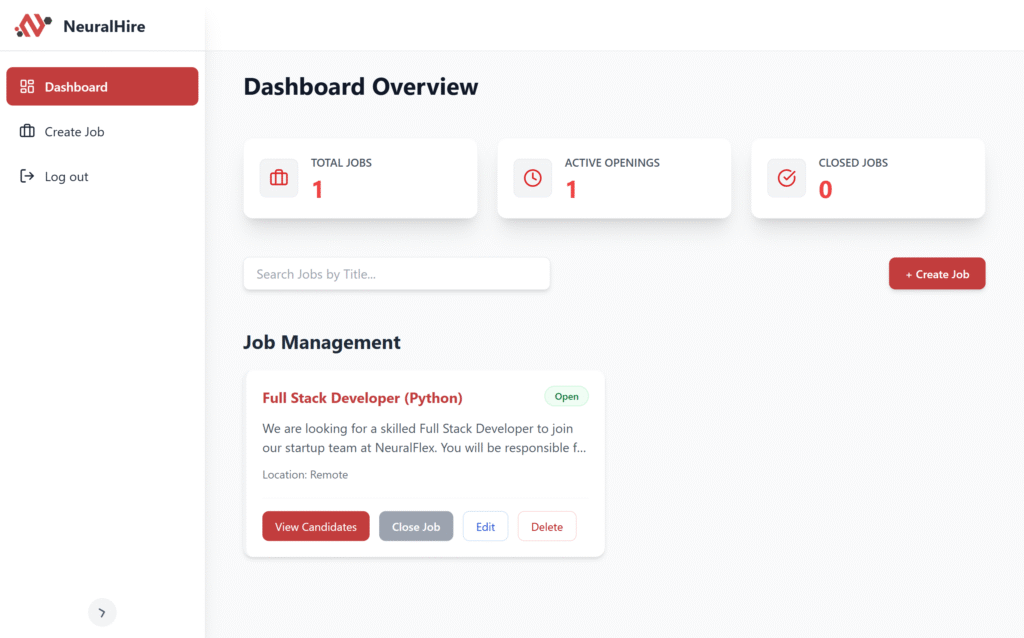 Centralized dashboard to manage job postings, candidate's CVs, and pipeline stages.